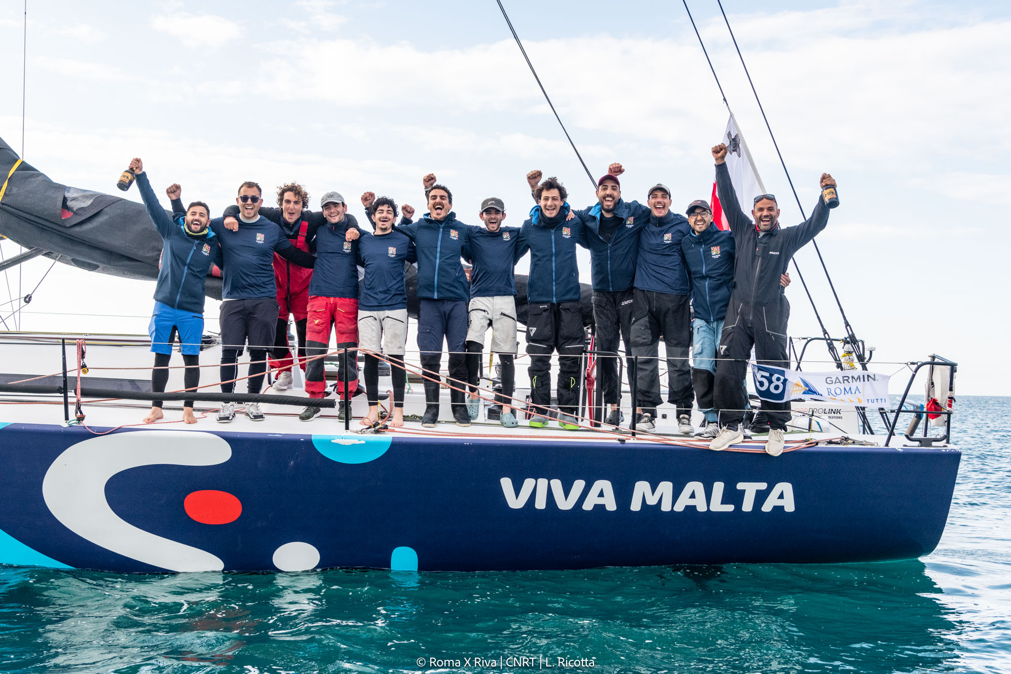 Competing aboard the Cookson 50 Viva Malta, the team took to the start line at Riva di Traiano on Saturday, 12 April 2026, for one of the Tyrrhenian Sea’s most celebrated offshore classics — the Roma Per Tutti — and returned with a treble: Line Honours, IRC Overall, and ORC Overall.